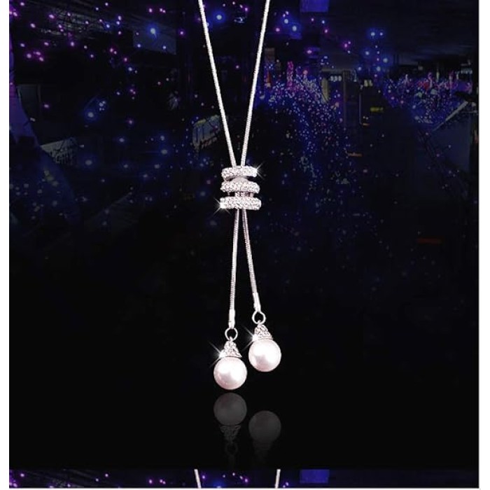 Spiral Pearl Pendant Long Necklace Crystal Accent